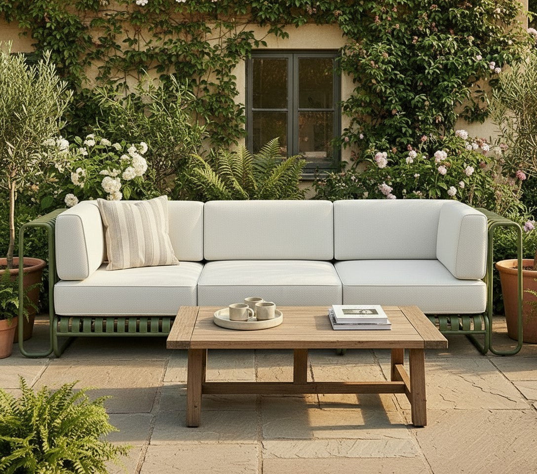 Asientos para exteriores, incluyen respaldo, diseñados para confort, estilo y durabilidad.