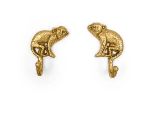 Estos ganchos presentan diseño de mono en latón, estilo exótico y decorativo para pared.