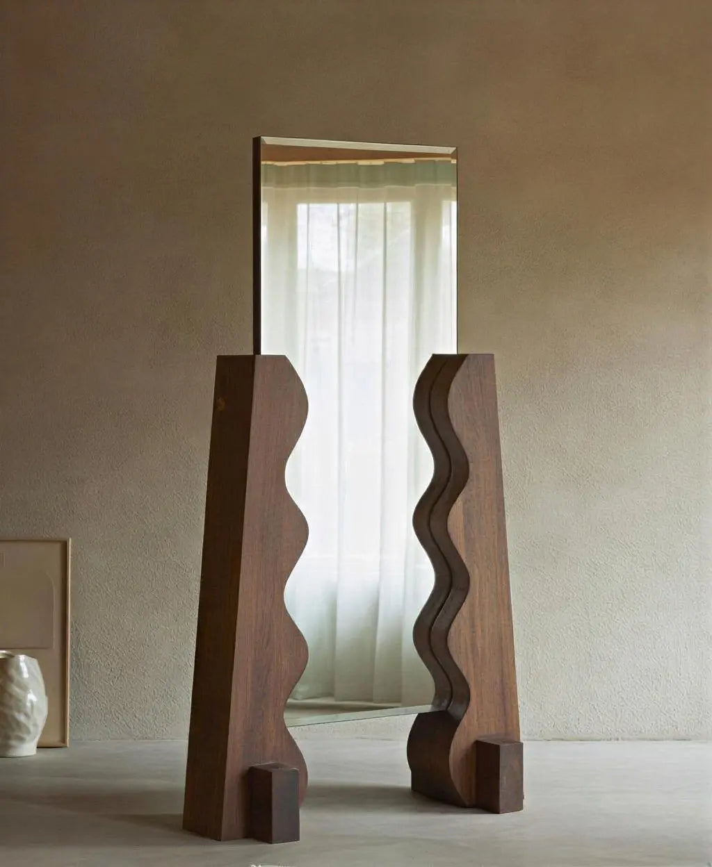 Espejo con base geométrica: diseño moderno y decorativo, ideal para realzar cualquier espacio.