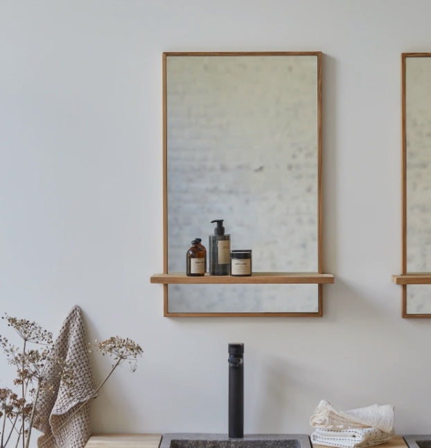 Espejo con barra portartículos tamaño superior: práctico y amplio para organizar tu baño fácilmente.