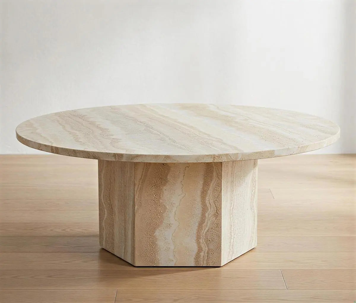 Mesita de piedra circular elegante y resistente que aporta estilo y funcionalidad a tu hogar.