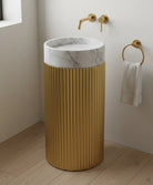 Lavabo con pedestal moderno que optimiza el espacio y aporta estilo limpio y elegante al baño.