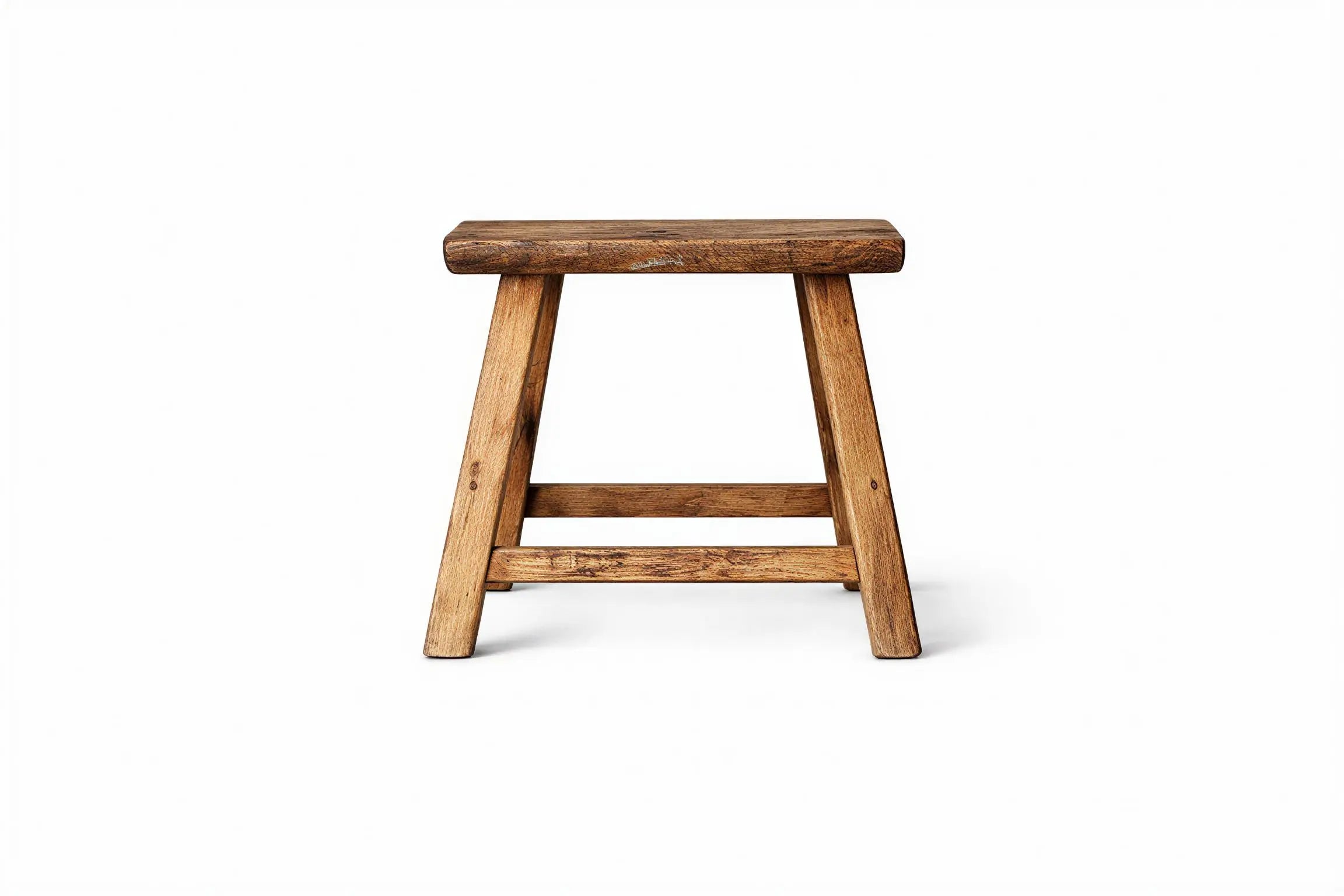 Taburete Origins de madera rústica, pieza natural y decorativa ideal para baños y espacios cálidos.