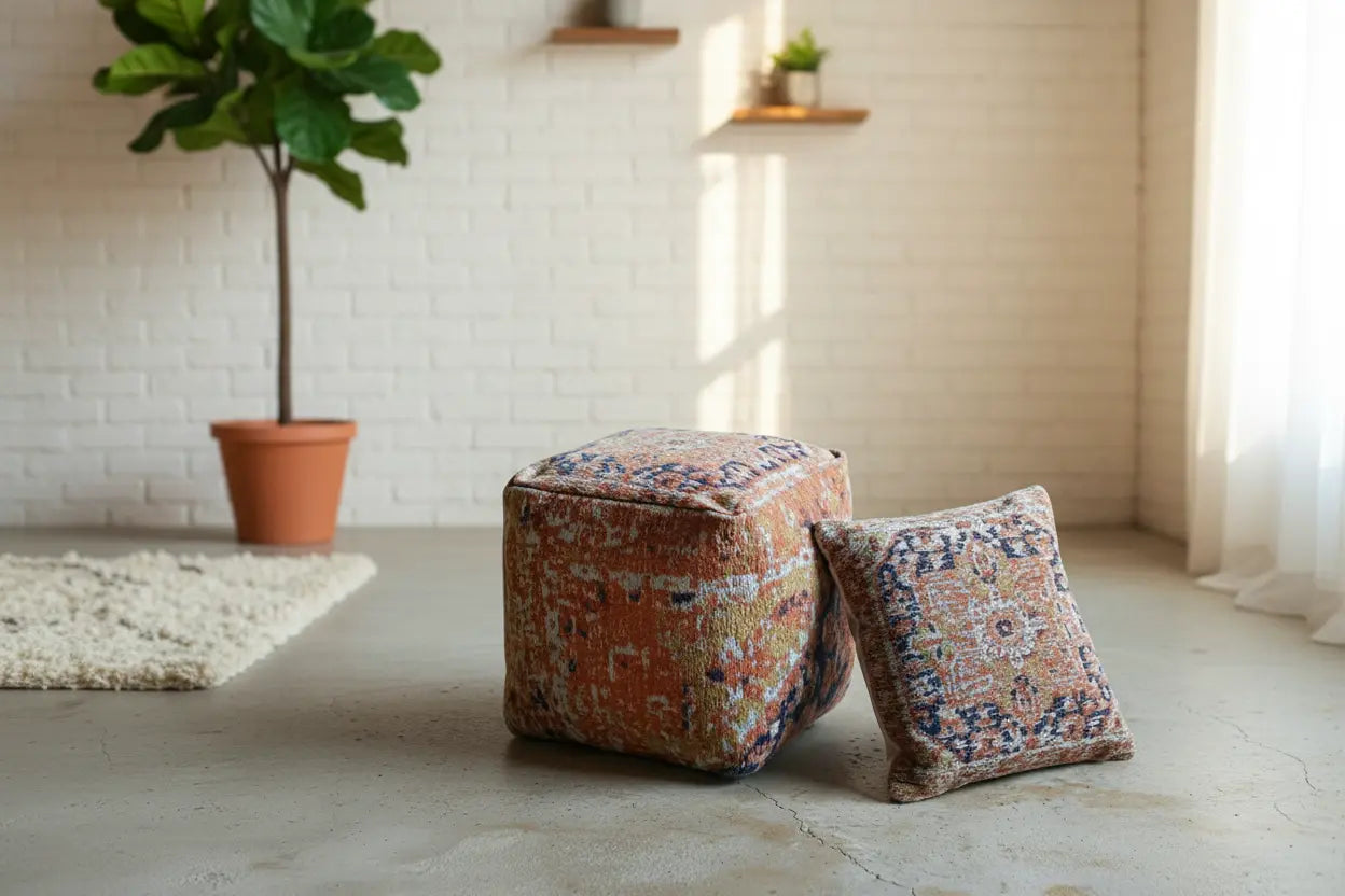 Pufs acolchados y versátiles, ideales como asiento extra o apoyo decorativo en cualquier espacio.