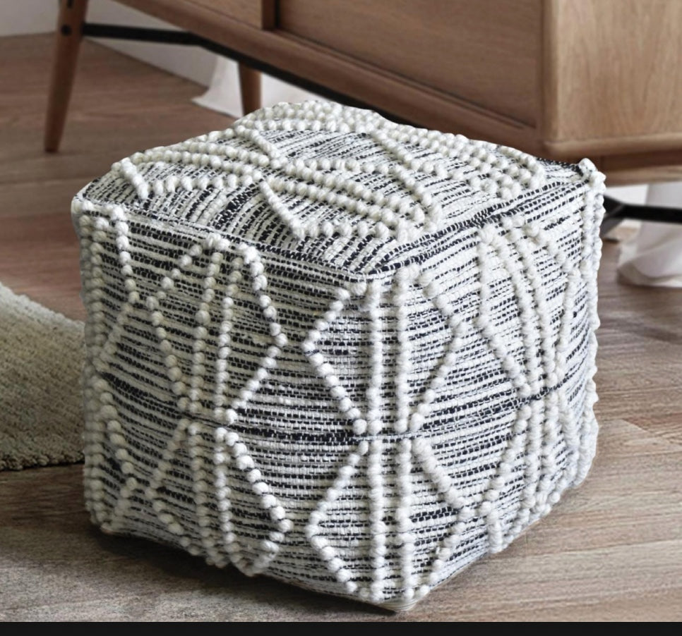 Puff decorativo y confortable que aporta estilo, comodidad y calidez a cualquier rincón.