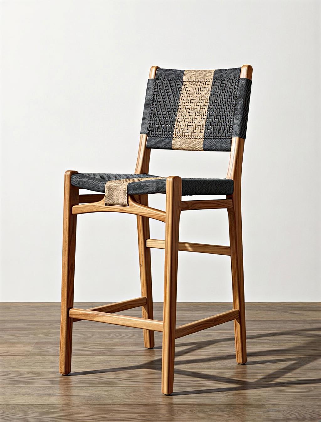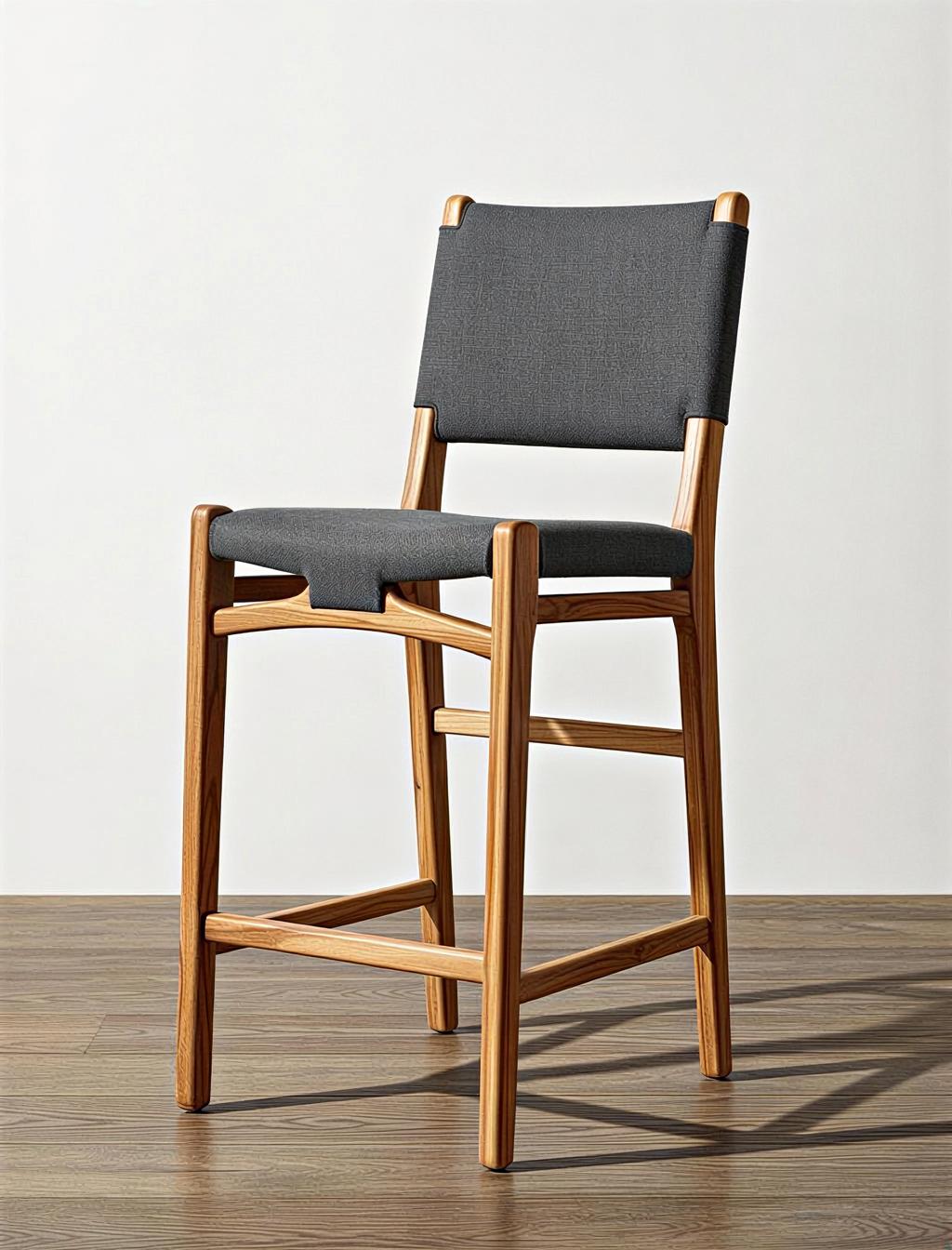 Silla alta de madera acolchada, cómoda y elegante, ideal para barras, cocinas o espacios modernos.