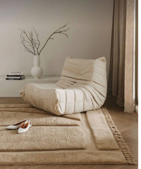 Sillón bajo acolchado: cómodo y moderno, ideal para salas, dormitorios o espacios de relajación.