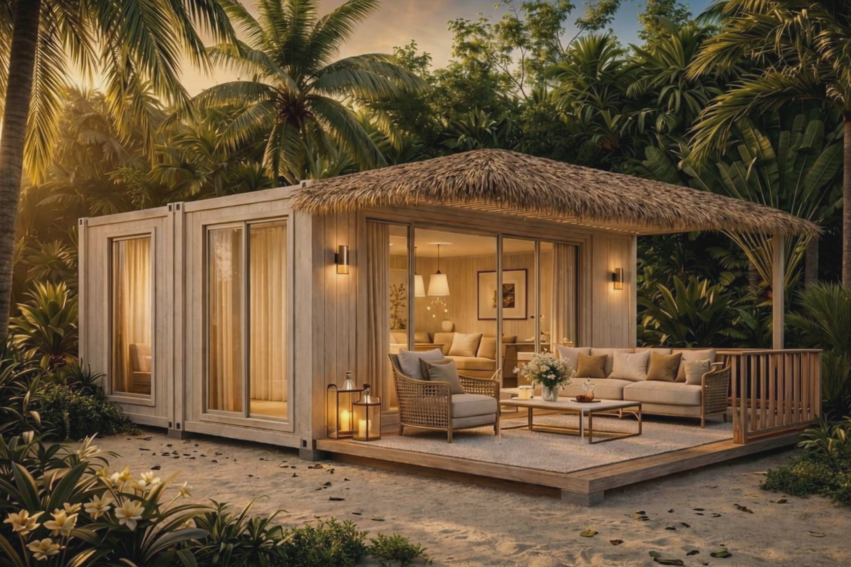 Módulo de 50 metros cuadrados, diseñado para proyectos hoteleros, resorts y Airbnb, con una estética caribeña elegante y materiales pensados para climas tropicales.