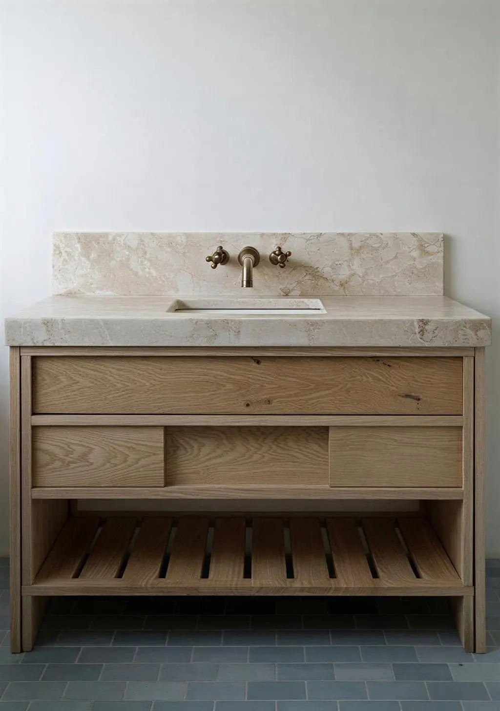 Mueble De Baño Con Almacenamiento Y Doble Grifo