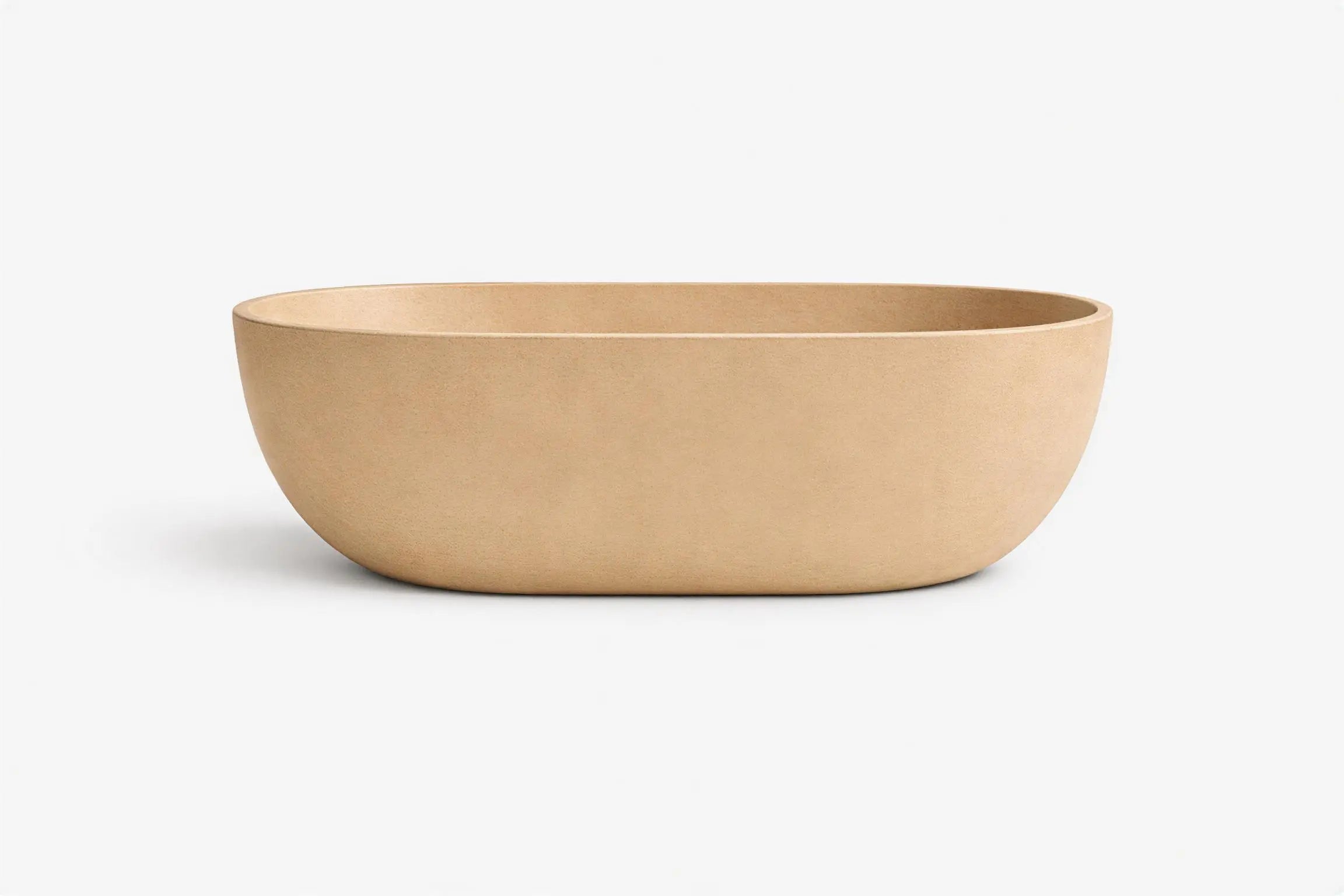 Bañera ovalada Origins en tono arena, diseño minimalista y elegante que aporta calma y sofisticación.