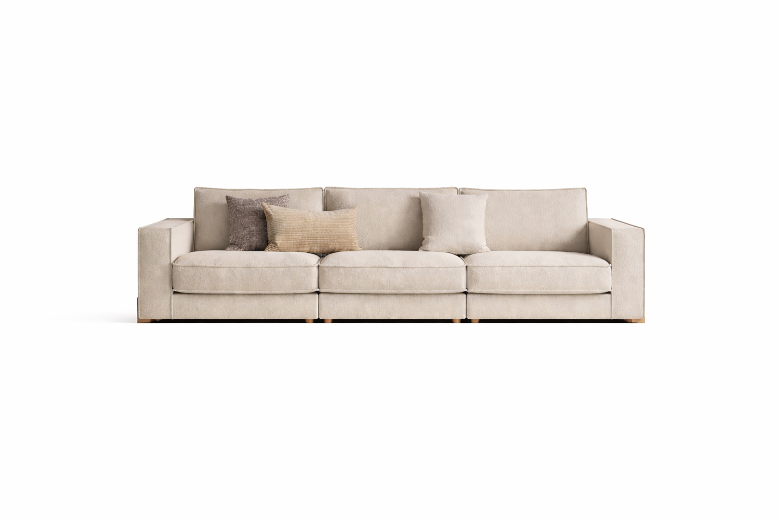 Sofá Armony de tres plazas en tono beige, diseño moderno y cómodo, ideal para espacios elegantes.