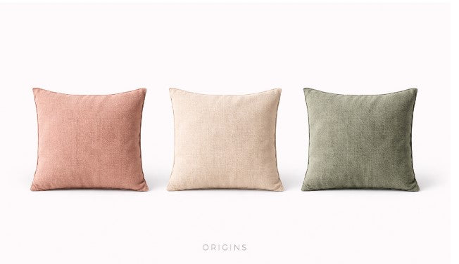 Conjunto de cojines Origins en tonos naturales, diseño suave y elegante para espacios acogedores.