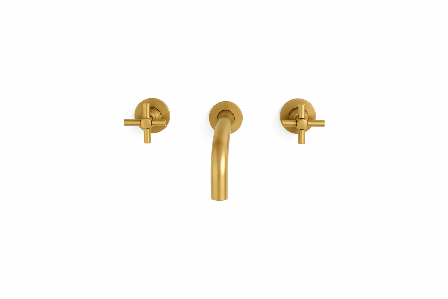 Grifo mural Origins en acabado latón cepillado, diseño minimalista y elegante para baño.