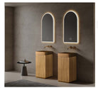 Lavabo doble integrado que ofrece diseño funcional y comodidad para baños compartidos.