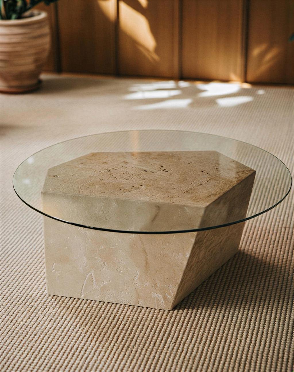 Mesa rústica circular que aporta calidez y estilo natural, ideal para cualquier espacio del hogar.