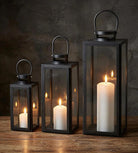 Pack de tres faroles decorativos que iluminan y aportan estilo elegante a cualquier espacio.
