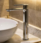 Grifo de lavabo alto con diseño elegante que aporta comodidad, estilo y funcionalidad al baño.