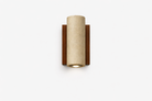 Aplique de pared Origins en piedra travertino y madera, luz cálida y diseño elegante para baños modernos.