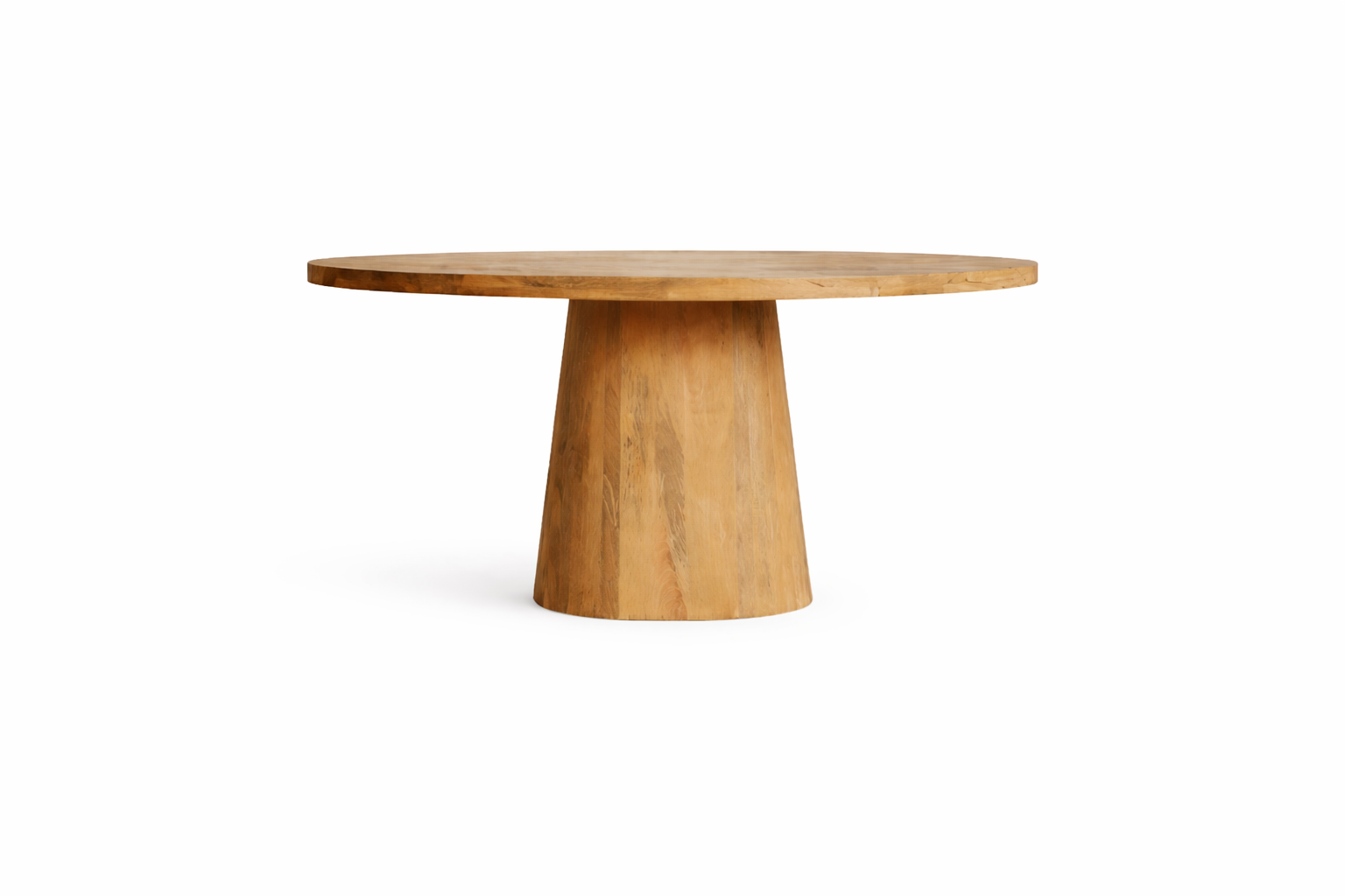 Mesa redonda Origins de madera natural, diseño elegante y robusto, perfecta para comedores modernos.
