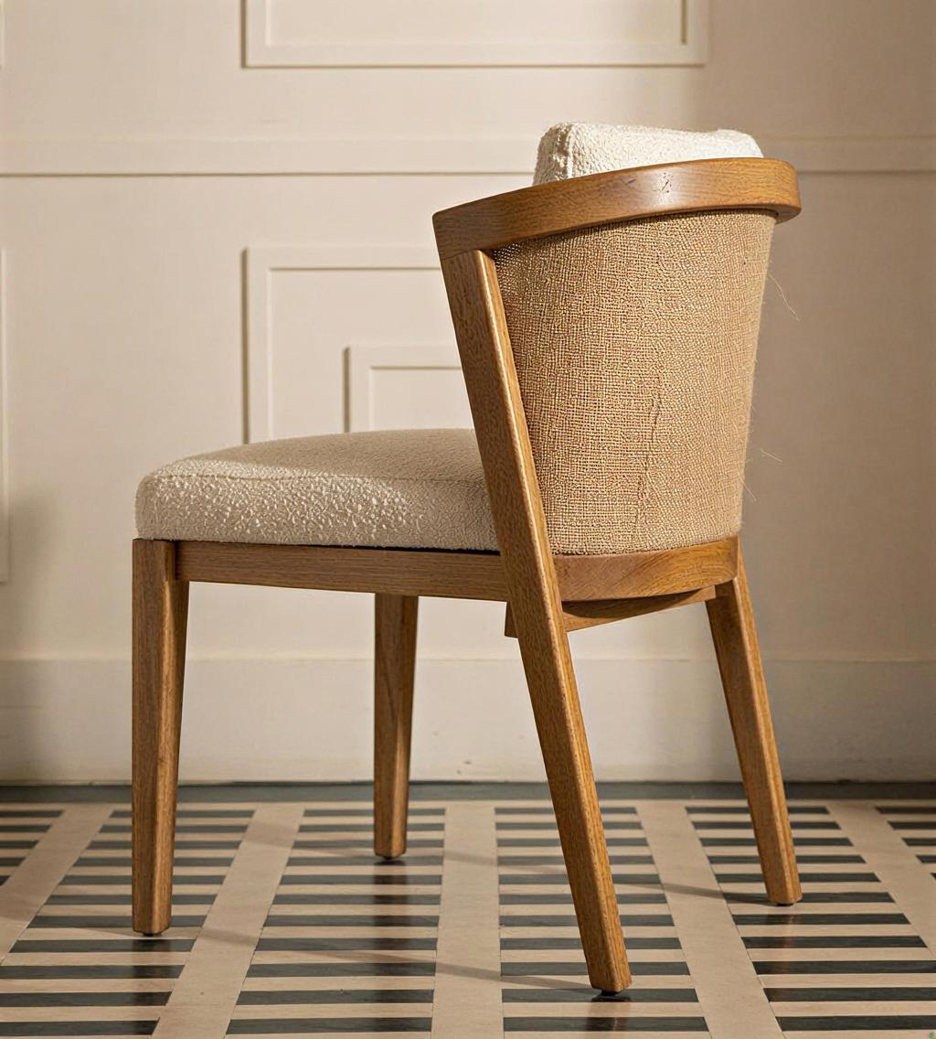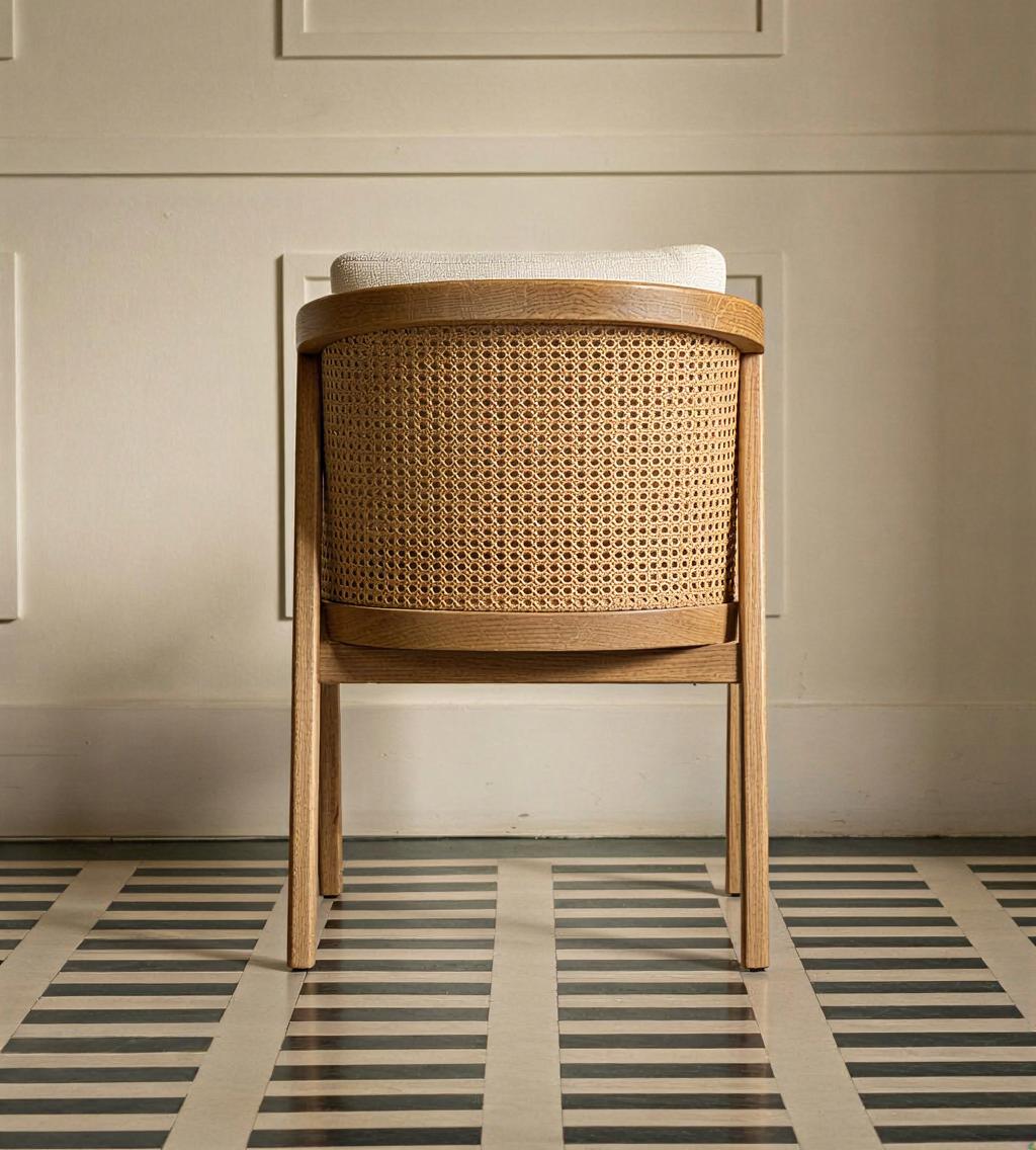 Silla de madera con respaldo de ratán, diseño natural y elegante, ideal para interiores modernos.