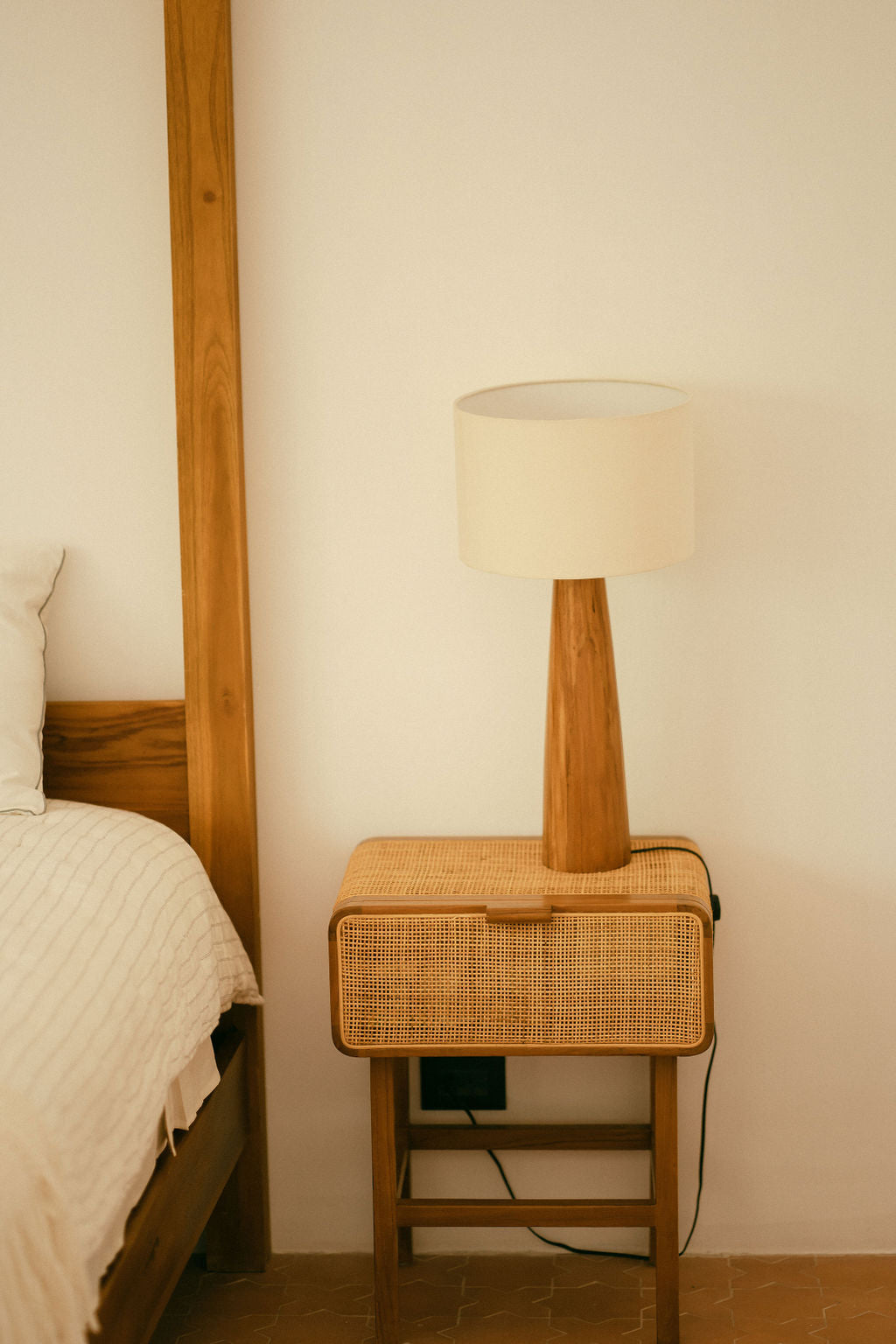 Con una estructura artesanal envuelta y tejida en ratán natural que combina un toque moderno con técnicas tradicionales que aportan calidez y estilo a cualquier habitación.