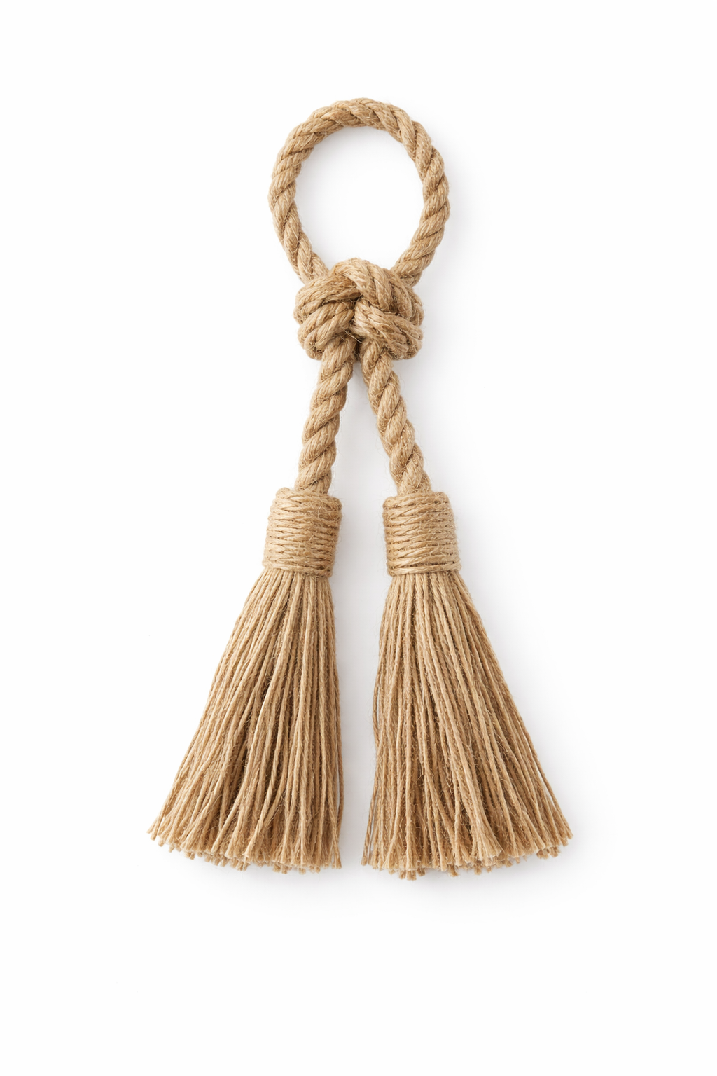 Estos adornos presentan cuerda de yute trenzada y borlas dobles, estilo natural y boho.