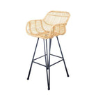 Con una estructura de metal hecha a mano con un diseño de tejido y envoltura de ratán natural. Complementado con tapones de goma para facilitar el manejo de la silla y cero rayones en el piso.