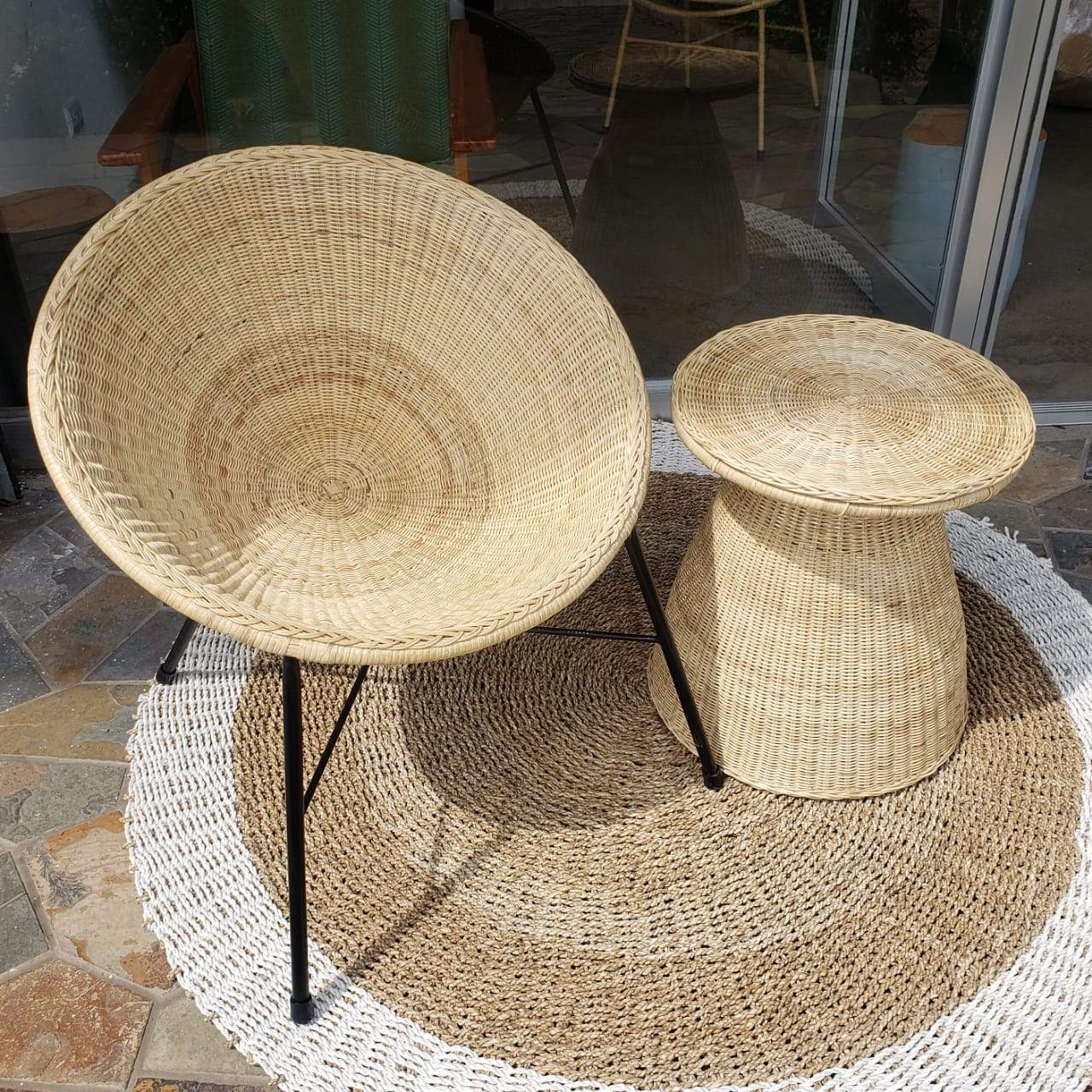 Esta mesa auxiliar hecha a mano con base de metal y ratán se caracteriza por un diseño coqueto y divertido. Apto para libros de mesa, bandejas para la hora del té y más. Para solicitar asistencia y diseños personalizados, contáctenos.
