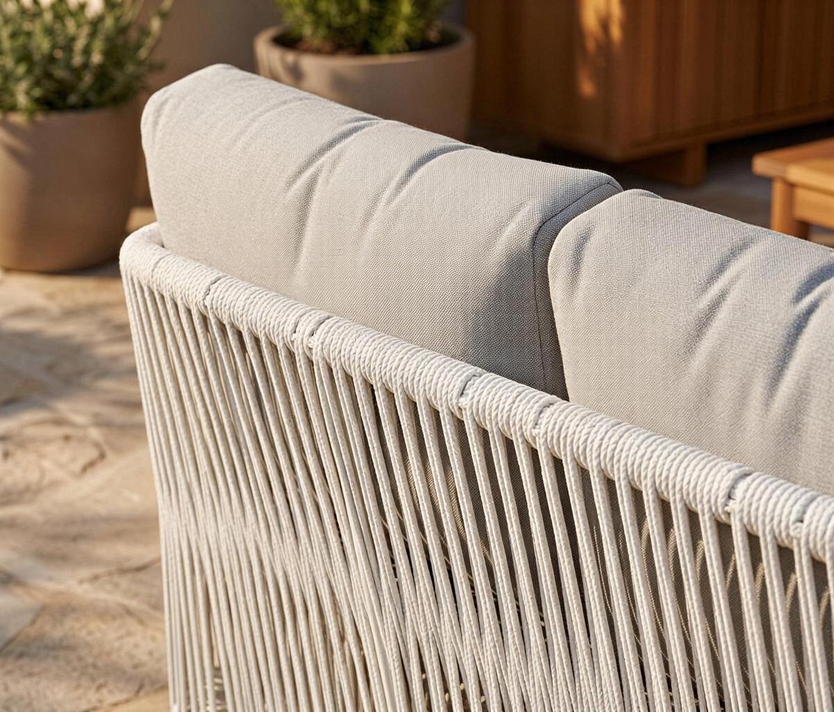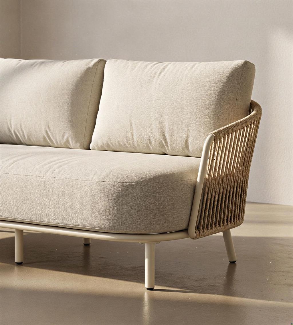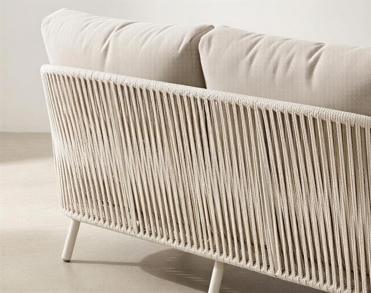 Sofá blanco compacto con plataforma integrada, elegante y cómodo, ideal para todo tipo de espacios.