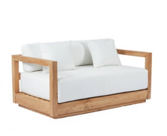 Estos sofás presentan madera natural y cojines suaves, estilo moderno y acogedor para exterior.