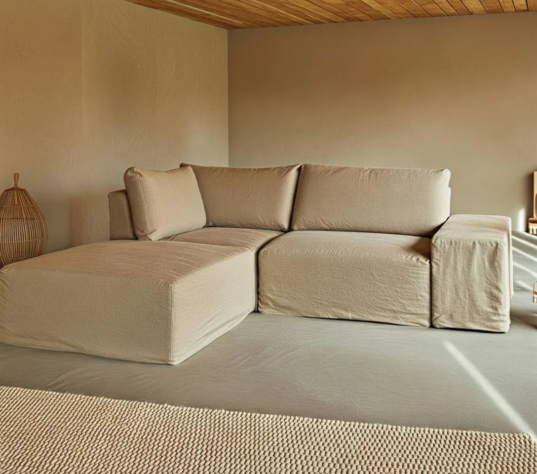 Sofá lateral color tierra, cómodo y elegante, perfecto para espacios cálidos y modernos.